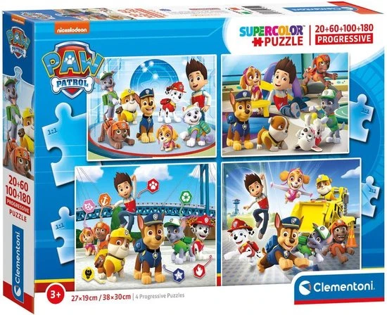 Clementoni Kinderpuzzels – Paw Patrol, Legpuzzel Set 20+60+100+180 Stukjes, 3-5 Jaar – 21412