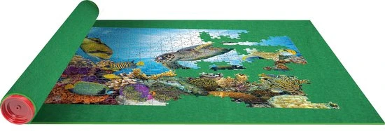 Vilten mat om puzzels in te wikkelen. Stevige plastic buis om de puzzel op te rollen en veilig in op te bergen. Voor puzzels van 500 tot 2000 stukjes. Afmeting kleed 105 x 78 cm.