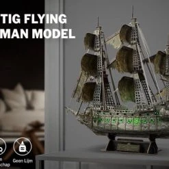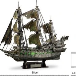 Dit prachtige Flying Dutchman-model heeft twee dekken en een rij meedogenloze kanonnen aan elke kant van het schip. Het unieke boegsprietontwerp bestaat uit skeletbeelden en bewerkte gedetailleerde ornamenten. De romp is gemaakt van verrot hout met groene LEDs. De scheepsboog in monstervorm en het mysterieuze ?Poop Deck? met standbeelden zullen je 3D-puzzel van het piratenschip tot leven brengen.