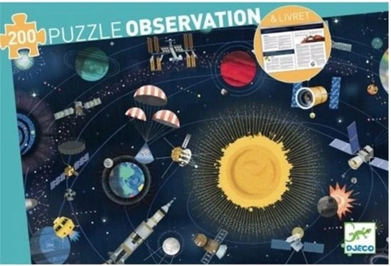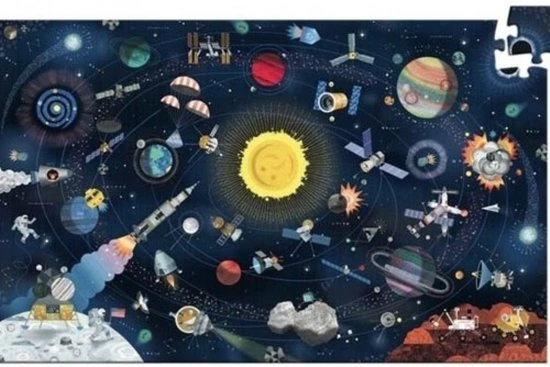 Deze prachtige observatie puzzel van Djeco geeft een kijkje in de ruimte. Puzzel hem compleet en er is zoveel te zien. Een raket, meteoriet of planeet; kan jij ze vinden? Er zit ook een poster bij op ware grootte zodat je de puzzel hier eventueel op kan leggen om hem te maken.
