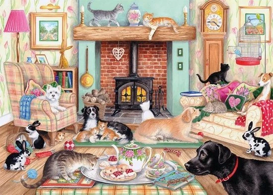 Whatch out! Animals At Home! Deze dieren zitten op de wacht. Als groot dierenliefhebber kunnen deze Falcon puzzels met daarop de liefste dieren niet ontbreken in jouw collectie. Met maar liefst twee keer 1000 puzzelstukjes heb jij dubbel zoveel puzzelplezier! Ga aan de slag samen met je partner, kindje of opa en oma. De legpuzzel is gemaakt van karton en iedere puzzel heeft een afmeting van 68 x 49 cm.