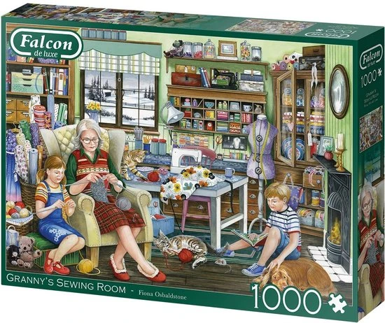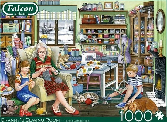 Deze puzzel heeft als thema ‘Granny’s Sewing Room’ en bestaat uit 1000 puzzelstukjes.