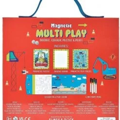 - 4 spellen: magnetische puzzel (20 st.), spelfiguurtjes met spelachtergrond, tekenbord en inkleurbord