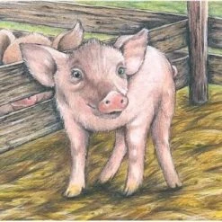Een houten blokpuzzel bestaande uit 9 blokken. Op de blokken staan 6 verschillende boerderijdieren afgebeeld.