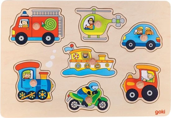 Goki Houten Noppenpuzzel Voertuigen, 7st.