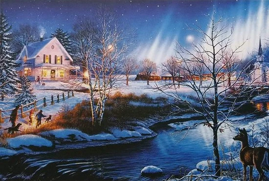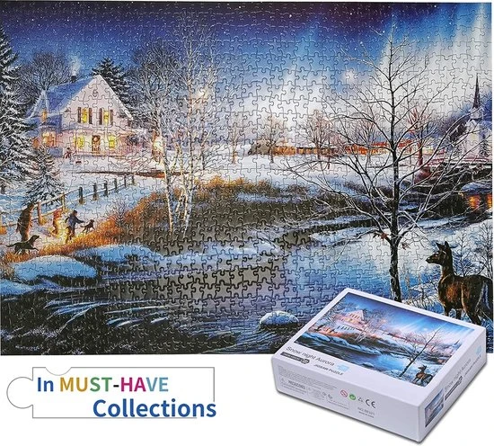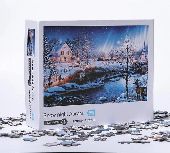 Happy Puzzle Sneeuwnacht Aurora Puzzel 1000 Stukjes Volwassenen – Legpuzzels Puzzle – 50*70 Cm – Speelgoed Hobby En Creatief Voor Volwassenen – Jigsaw Puzzel – Landschap