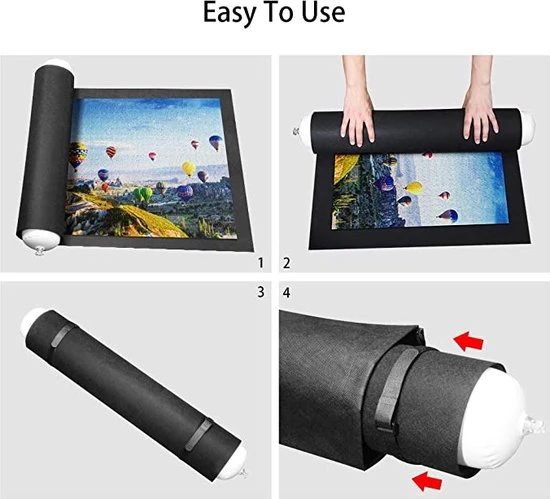Met het gebruik van deze puzzelmat houdt u de puzzel op de exacte plaats waar u dat wilt en waar u de ruimte kunt missen. Ook gaat het puzzelen u gemakkelijker af, dankzij de afmetingen en donkere achtergrond!
