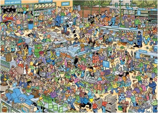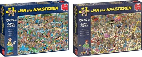Jan van Haasteren De Speelgoedwinkel met 1000 Stukjes is een van de nieuwe puzzels van Jan van Haasteren. In deze Speelgoedwinkel verloopt niet alles even soepel.De Speelgoedwinkel van Jan van Haasteren puzzel met 1000 stukjes voor de echte Jan van Haasteren fans! Zodra je Jan van Haasteren de Speelgoewinkel met 1000 Stukjes begint te puzzelen stuit je op het ene na het andere hilarische tafereel.