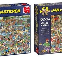 Jan van Haasteren tekent al decennia lang humoristische, kleurrijke platen met veel detail. De doorgewinterde fan zoekt in elke puzzel direct naar de haaienvin, h?t handelsmerk van Jan. Om aan de grote vraag naar Jan van Haasteren puzzels te voldoen, wordt er ook getekend door ‘Jan van Haateren studio’ tekenaars. Samen met Jan werken deze tekenaars aan nieuwe dolkomische platen. In de Jumbo collectie vind je tientallen Jan van Haasteren puzzels van 150 tot 3000 stukjes. Heel veel puzzelplezier!
