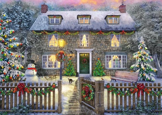 Voor de echte puzzelaars is er deze mooie Christmas Cottage legpuzzel van Falcon. De prachtige illustratie op de puzzel brengt je in een ware winter wonderland. Stukje voor stukje leg jij een waar prachtstuk neer met als inspiratie The Christmas Cottage! Maak de sfeer compleet met een kopje thee en wat speculaasjes en de feestdagen kunnen beginnen. De puzzel heeft 1000 stukjes en heeft een afmeting van 68 x 49 cm. Veel puzzelplezier!
