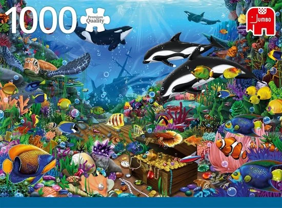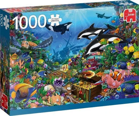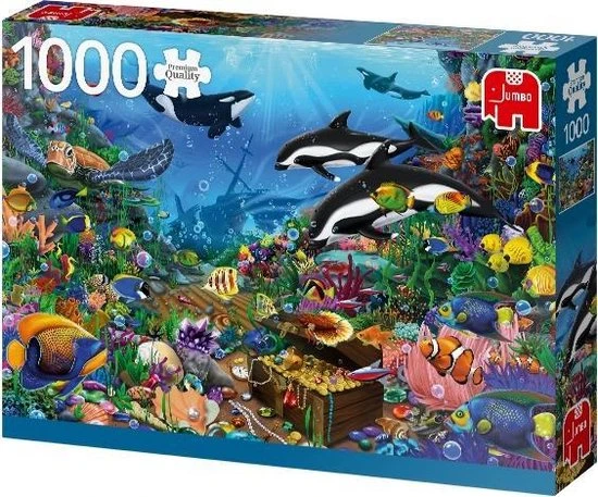 Jewels of the Deep Jumbo Premium Quality Puzzel 1000 Stukjes.Met de Premium Collection legpuzzels van Jumbo beleeft u uren puzzelplezier. Jumbo staat voor ruim 160 jaar kwaliteit en vakmanschap. Voor het maken van de puzzels wordt alleen gebruik gemaakt van het allerbeste gerecyclede karton van verantwoorde herkomst. De puzzels worden gesneden met speciale dunne messen. Hierdoor behoudt elk puzzelstukje zijn optimale pasvorm en zorgen de smalle naden voor een extra glad en bijna naadloos eindresultaat.