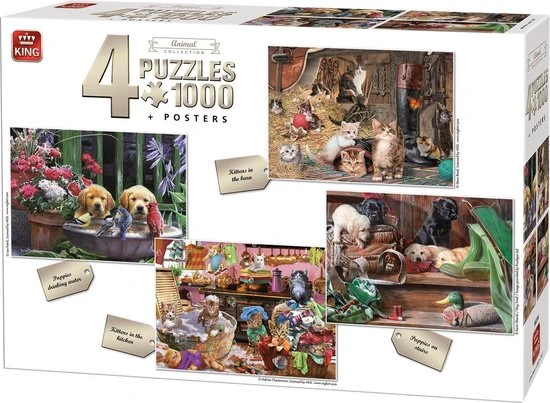 Iedere puzzel bestaat uit 1000 stukjes, dat zijn totaal 4000 stukjes! Hiermee ben jij dus wel even zoet. Bij elke puzzel zit een bijbehorende puzzelposter.