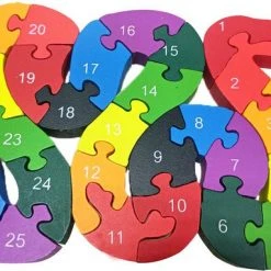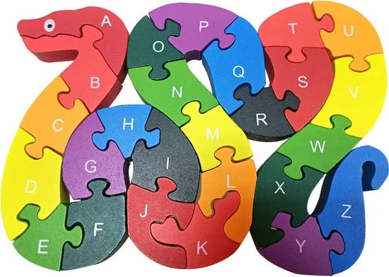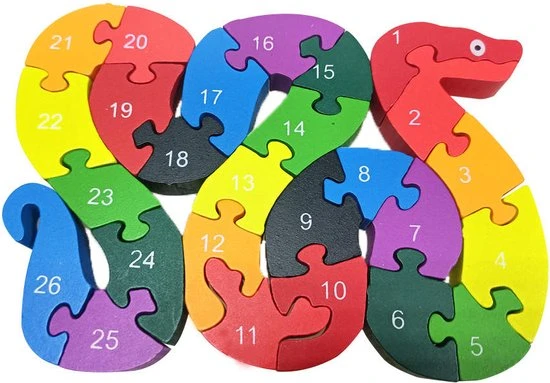 Met deze kleurrijke slang puzzel leert u zowel tellen, het alfabet en pasvormen in een keer!