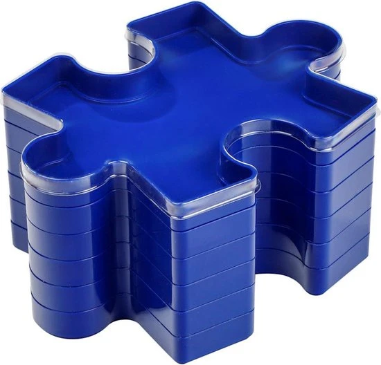 Deze puzzelsoorteerder is super handig om al jou puzzelstukjes in uit te zoeken. Sorteer de puzzel stukjes op kleur of op onderdeel van de puzzel afbeelding. Deze zes sorteerbakken zijn stapelbaar en afsluitbaar met 1 deksel.