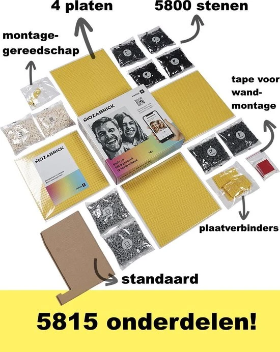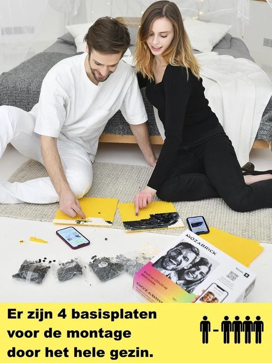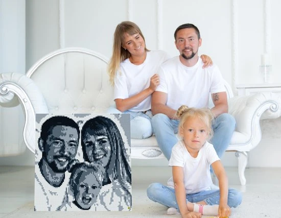 U kunt 2 of 4 kleine S sets en 2 of 4 grote L sets combineren om een ??nog grotere afbeelding samen te stellen. Upload een foto en selecteer de gewenste montage-opstelling uit de gegeven opties. Vervolgens kunt u de montage-instructie per e-mail ontvangen of online beginnen met monteren. Als u de steen op een verkeerde plek hebt gezet, dan kunt u deze eenvoudig verwijderen met behulp van een montagetool. Sluit alle basisplaten aan en geniet van uw voltooide pixelart.