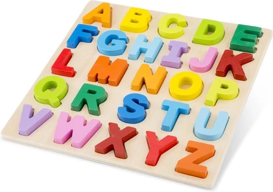 Een prachtige New Classic Toys alfabet puzzel met verhoogde letters in heldere kleuren. Gemakkelijk voor kleine handjes om de letters eruit te pakken en weer terug te kunnen plaatsen in de puzzel. Deze puzzel helpt mee aan de herkenning van de letters, kleuren en draagt bij aan de ontwikkeling van de fijne motoriek. Deze houten puzzel van New Classic Toys is onderdeel van de Educational productlijn. Bouwen, stapelen, sorteren en tellen. Spelen en leren gaan hand in hand met de collectie “Educational” van New Classic Toys.