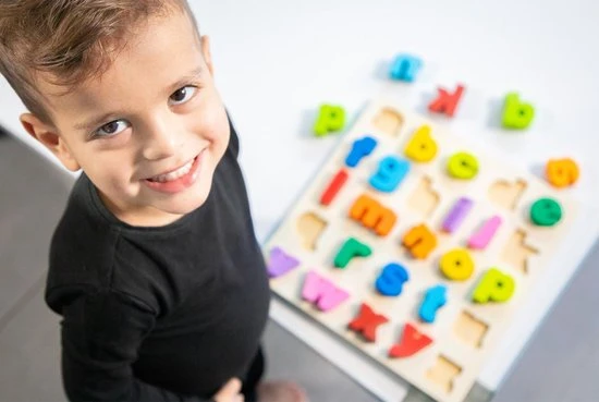 Ken jij de letters A tot en met Z al? Deze kleurijke puzzel geeft kinderen een introductie in de wereld van het afabet om zo hun eerste stappen te zetten op het gebied van lezen en schrijven. Deze prachtige puzzel is ideaal voor de ontwikkling van de creativiteit, het probleemoplossend vermogen en natuurlijk het leren van de letters van het alfabet. Daarnaast stimuleert het spelen met deze set de ontwikkeling van de fijne motoriek. De houten vormen kunnen gemakkelijk worden vastgegrepen en zijn zeer kindvriendelijk. Moedig je kind aan om het alfabet te leren en heb tegelijkertijd plezier met deze geweldige puzzel. Bevast 26 houten letters en een houten bord.