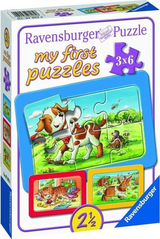 Ravensburger Mijn Dierenvriendjes – My First Puzzels – 3×6 Stukjes – Kinderpuzzel