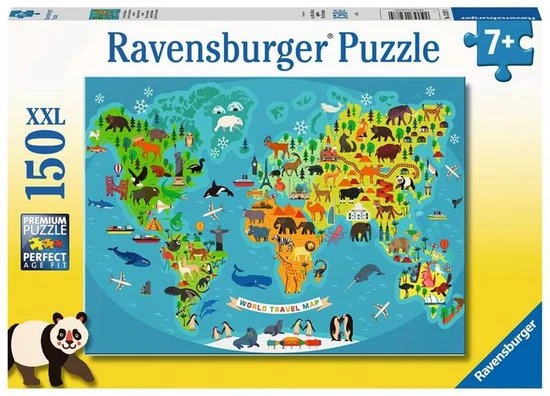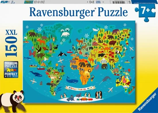 Puzzel deze mooie Dieren Wereldkaart plaat van Ravensburger met 150XXL stukjes!