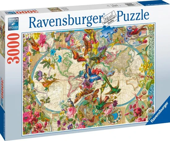 Puzzel deze Ravensburger legpuzzel met als thema Flora en Fauna Wereldkaart.