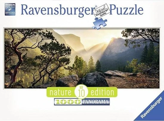 Ontsnap uit de realiteit en stap in de wereld van Ravensburger puzzels. Deze Ravensburger puzzel van 1000 stukjes is geschikt voor zowel beginnende als ervaren puzzelaars. En omdat onze geliefde puzzels een standaard formaat hebben, kun je het resultaat inlijsten en ophangen. Dankzij de met de hand gemaakte stansmessen is de vormvariatie van de stukjes oneindig. Jong en oud zullen genieten van deze Yosemite Park panorama puzzel met 1000 stukjes.