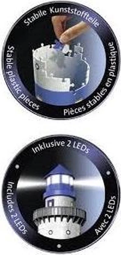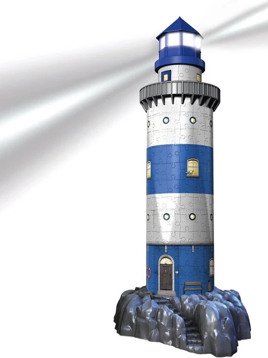 Beleef iets unieks door deze maritieme vuurtoren van Ravensburger te bouwen. De perfect passende kunststof onderdelen zorgen daarbij voor een uitstekende stabiliteit, zonder lijmen. Een echte highlight wordt het bouwwerk in het donker, als twee pulserende LEDs het licht van de vuurtoren laten schijnen.
