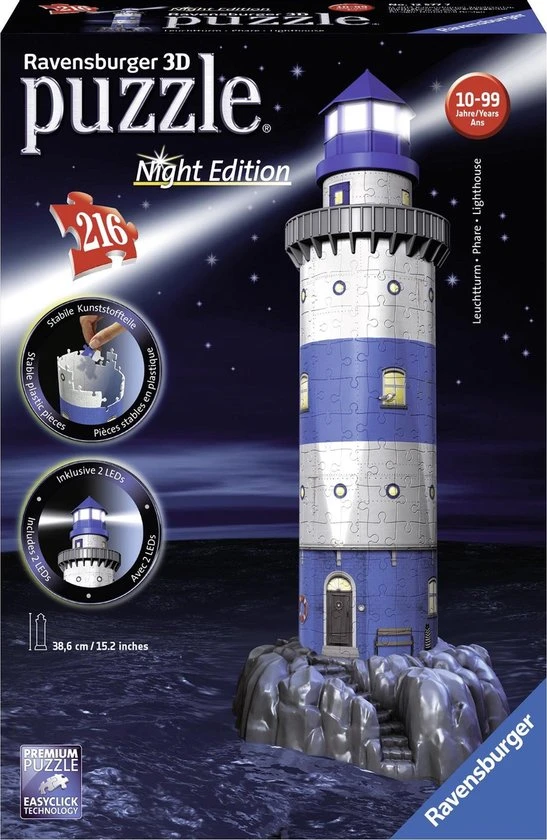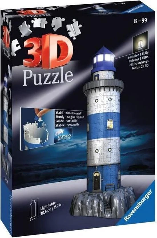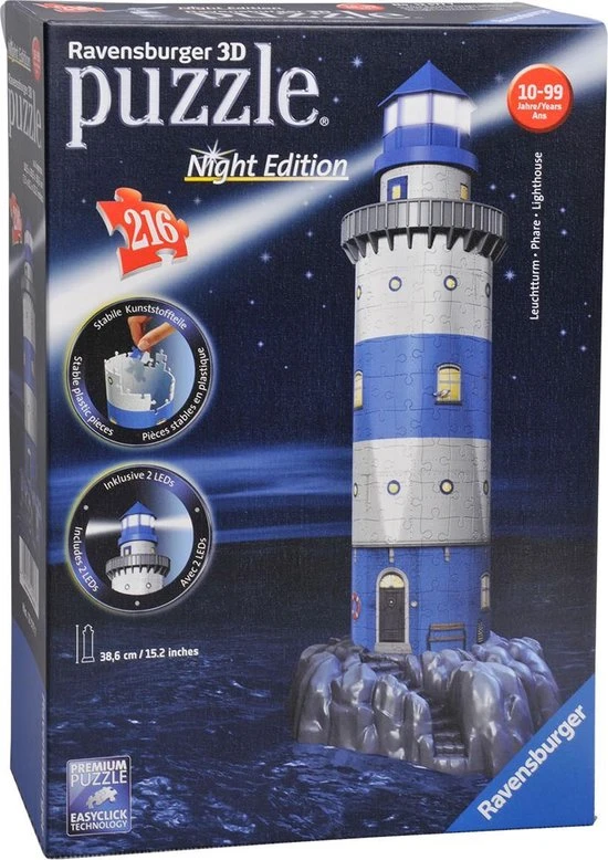 Ravensburger Vuurtoren Night Edition- 3D Puzzel Gebouw – 216 Stukjes