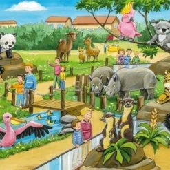 Deze 3 in 1 puzzel van een dagje in de dierentuin bevat een voorbeeldposter die dient als steuntje in de rug bij het oplossen van de puzzel. De puzzel bevat 3 x 24 stukjes.