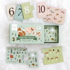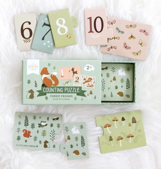 Leer tellen van ??n tot tien met deze leuke bosvriendjes puzzelset. De set bestaat uit 10 losse puzzels. Op het ene puzzelstukje staat het cijfer en op het andere het aantal bosvriendjes dat bij het cijfer hoort.