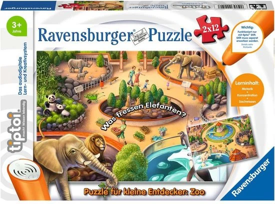 tiptoi Zoo. Soort: Legpuzzel. Aantal puzzles: 12 stuk(s). Genre: Dieren, Doelpubliek: Kinderen, Aanbevolen leeftijd (min): 3 jaar
