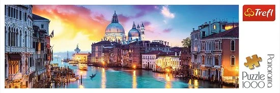 Trefl Panorama Grande Canal Veneti? puzzel – 1000 stukjes. Het ordenen van de puzzel verbetert de concentratie, leert het geduld te hebben en stimuleert het logisch denken. De hoge kwaliteit, de kleurverzadiging worden gegarandeerd door het mooie papier, bedekt met ecologische verf. Deze set werkt perfect als een origineel geschenk en zorgt voor urenlang puzzelplezier!
