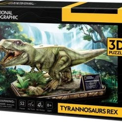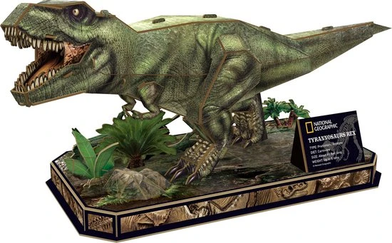 National Geographic 3D puzzel Tyrannosaurus REX dinosaurus bouwpakket. Houten dinosaurus 3D puzzel om zelf in elkaar te zetten, met instructies. Materiaal: licht hout (triplex). Bestaat uit 52 onderdelen. Er is geen gereedschap of lijm nodig.Verpakt in een fraaie doos. Geschikt voor kinderen vanaf 8 jaar.